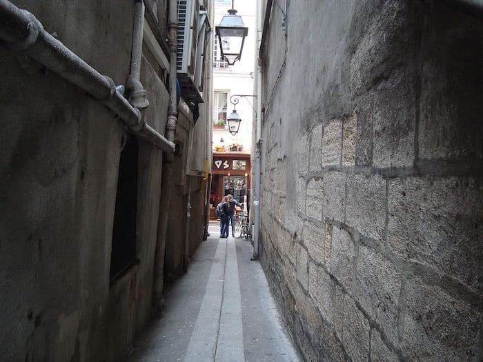 La rue du Chat-qui-Pêche, dans le 5ème, détient le titre officieux de la ruelle la plus étroite de la capitale, 1,80 mètre à son point le plus large !