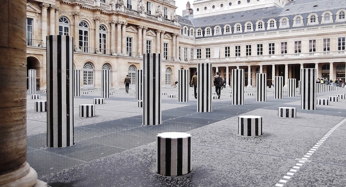 Au Palais-Royal, les Deux Plateaux de Buren offrent un terrain de jeu graphique et artistique à ciel ouvert.