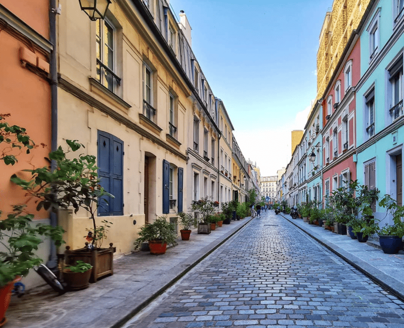 Instagram @traveling_gusch, Rue Crémieux dans le 12ème, réputée pour ses façades éclatantes, attire photographes et promeneurs en quête de couleurs.