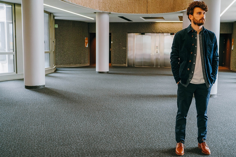 Pour ce second regard, nous avons voulu nous concentrer sur la superposition pour donner une certaine verticalité à l’ensemble et allonger la silhouette autant que possible. A travers ce regard, nous avons également voulu jouer sur les matériaux pour offrir un rendu visuel intéressant. Fait de superposition, j’ai naturellement choisi comme base un t-shirt aux tons clairs, et donc ici en couleur écru. J’ai trouvé ce basique chez Benjamin Jezequel. Fabriqué à partir de jersey de coton, le matériau nid d’abeille japonais est particulièrement texturé, donnant du soulagement à la pièce. Ci-dessus, nous jouons toujours sur le mélange de matières avec une chemise décontractée d’Octobre réalisée dans une jolie flanelle de couleur bleu chiné. Remarque importante : il sera assuré que le t-shirt est plus court que la chemise et non l’inverse. Et nous terminons le haut du corps avec une veste de travail en velours côtelé bleu marine de Percival qui, avec ses motifs discrets, accentuera la verticalité. Pour ceux qui ne le savent pas encore, la marque a une réputation pour la sculpture petite (avis à amateurs de vêtements de travail).