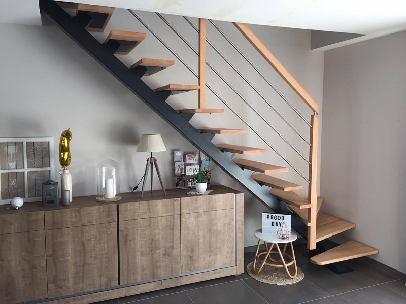 Si vous installez un escalier métal et bois pour passer d’une pièce à l’autre, alors choisissez entre :