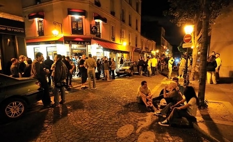 Ambiance jeune et dynamique dans le quartier Oberkampf (rue Amelot, 11e) :