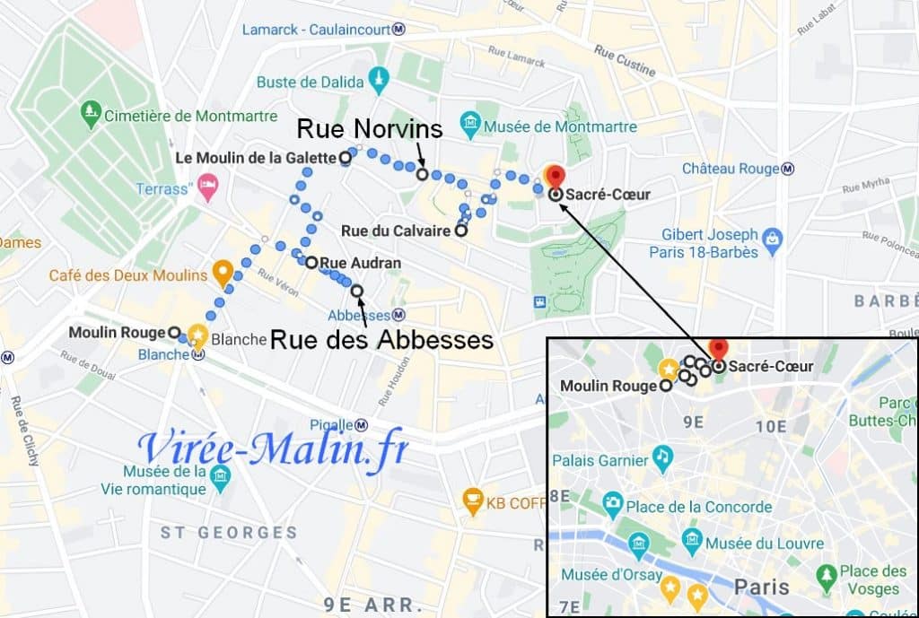 - Pour préparer votre balade, cliquez ici pour agrandir ce Googlemap, Visite du quartier Montmartre à Paris :
